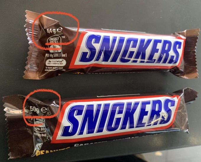 На этот раз "пострадал" любимый американцами батончик Snickers - его вес сократился с 50 до 44 грамм.